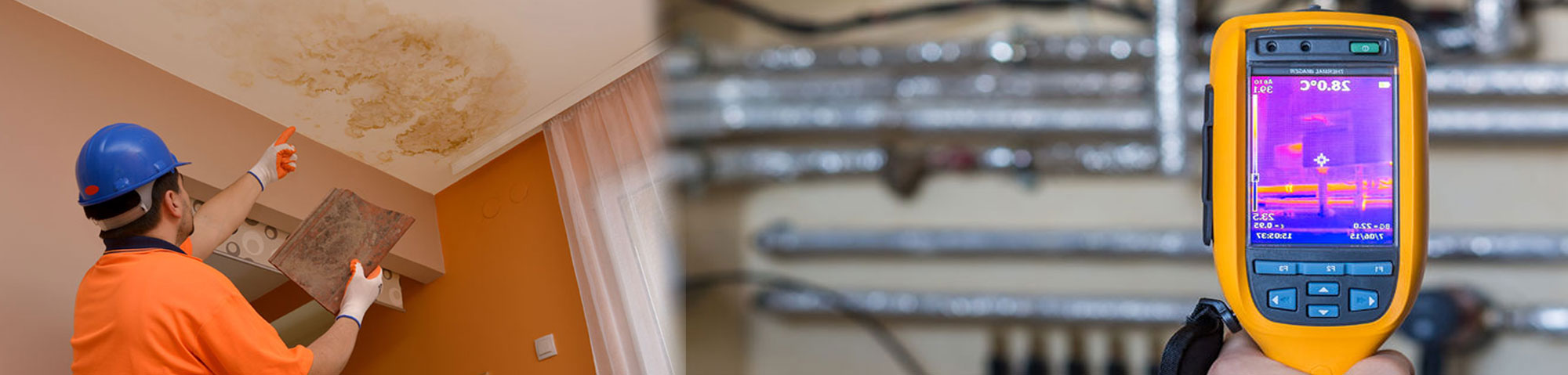 Once found only in advanced high-tech military gear, we can also use sensitive infra-red thermal imaging video cameras. They show us the tiny differences in temperature that can indicate the presence of water or even dampness.